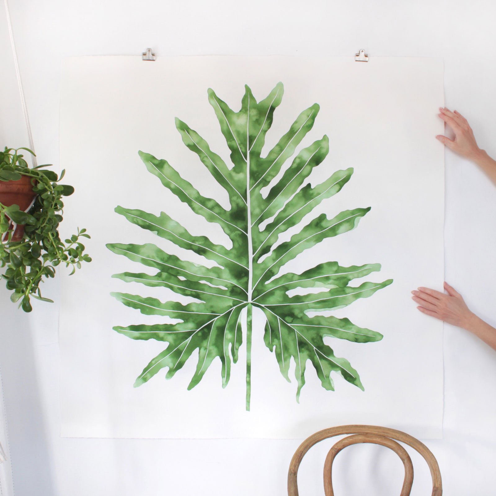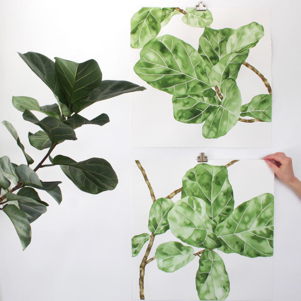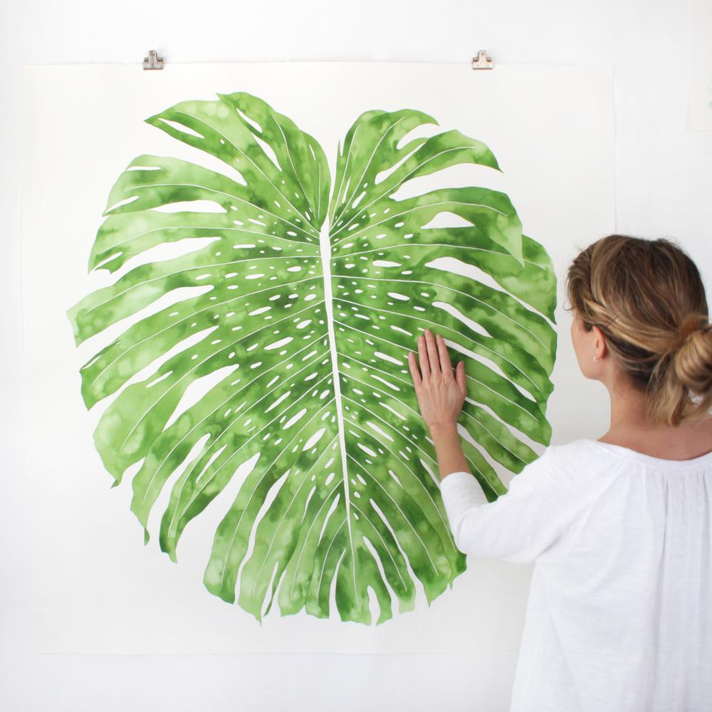 The only bright side was he pulled out lots of amazing reference from the rumble. I rarely take clippings from the plants I reference for my work but when the opportunity presented itself, I took it. Each monstera was collected, sketched, and painted to scale of the actual leaf to show the grandeur of these amazing plants.
